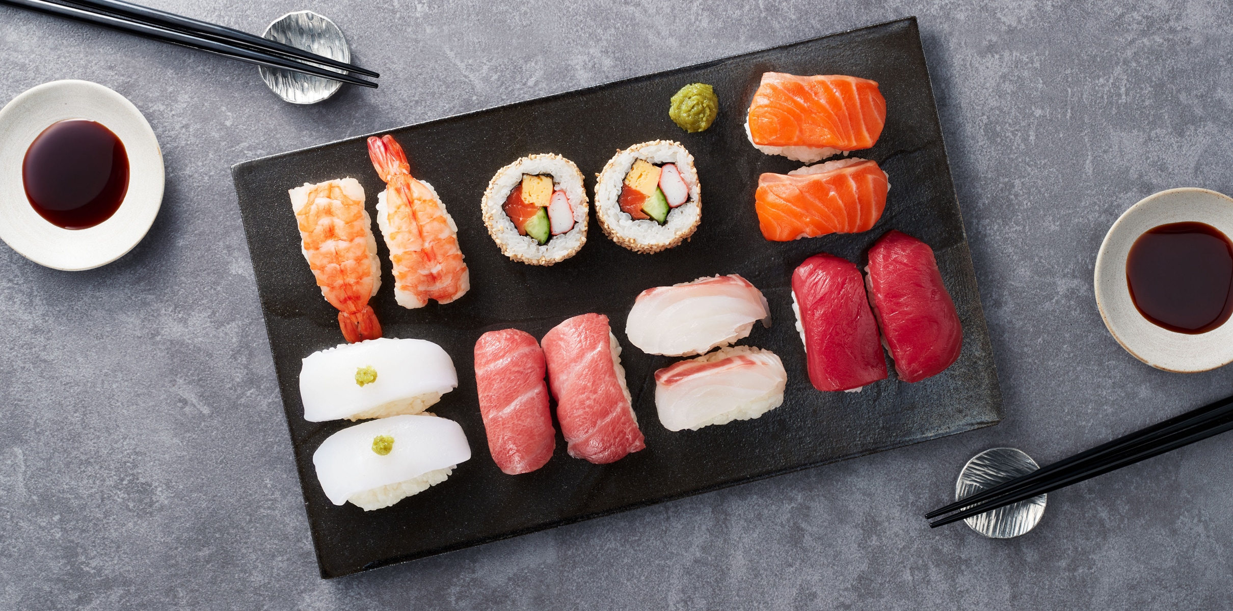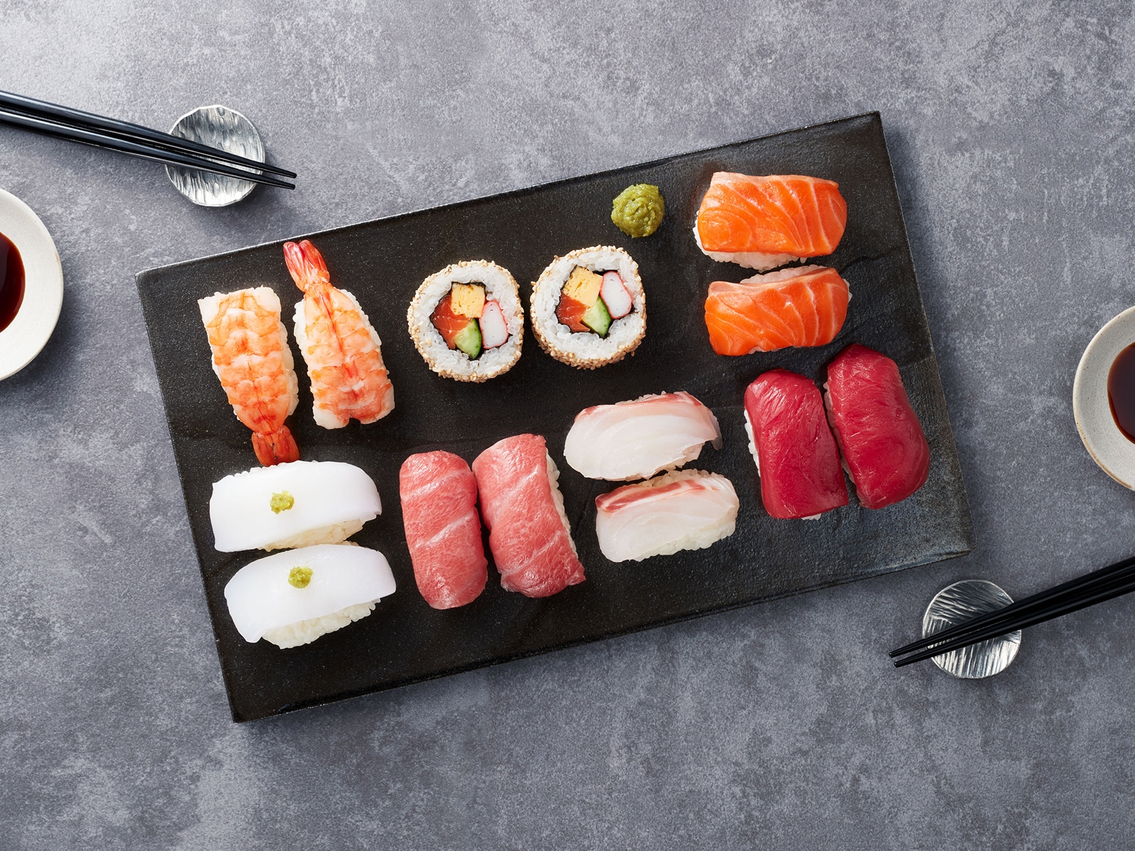 Serve the sushi with soy sauce and/or wasabi, with toppings as desired.