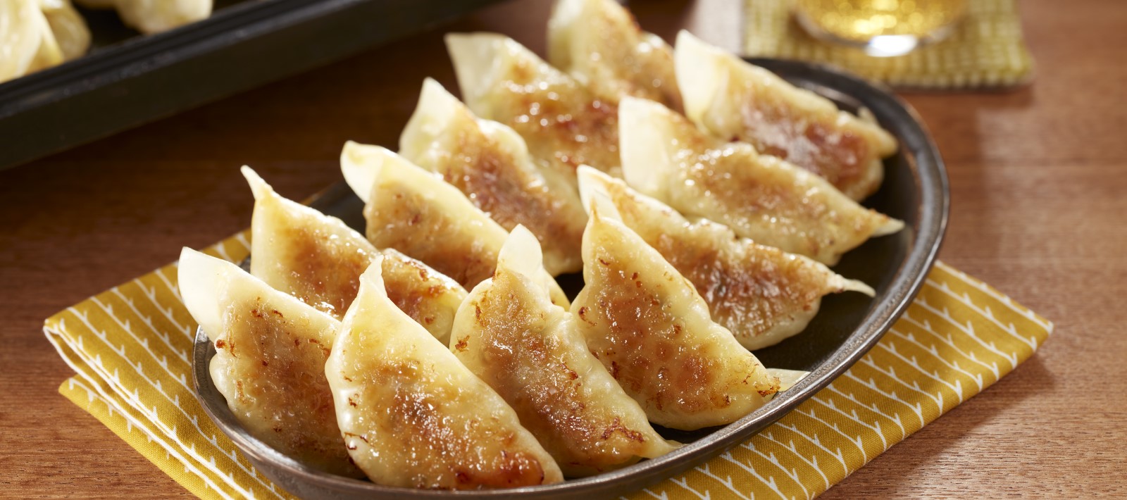 바닥면이 노릇한 색을 띄면 교자 높이의 1/3까지 물을 붓고 뚜껑을 닫습니다. 중불에서 4~5분 정도 구워냅니다. - 뚜껑을 열고 남은 물을 강불로 날려줍니다. 물이 많을 경우에는 뚜껑을 비스듬히 열어 물을 버린 후에 수분을 날리면 좋습니다. 물기가 사라지고 주변이 바삭해지면 그릇에 담습니다.