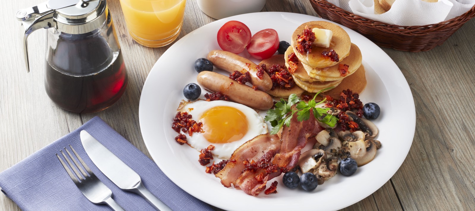 - 베이컨은 바삭해질 때까지 굽고 소시지를 그릴에 넣어 익힙니다.