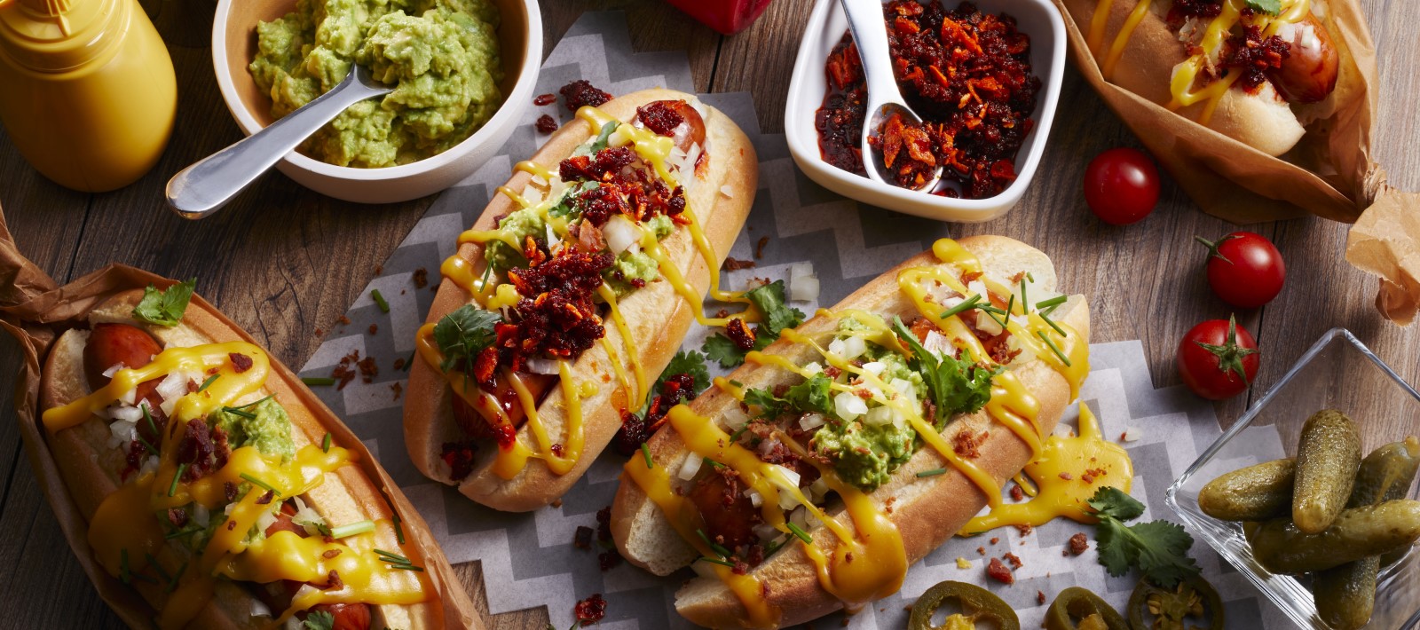 베이컨비츠, 고수, 차이브, 굵게 다진 양파, 할라페뇨를 취향에 맞는 양만큼 토핑합니다.