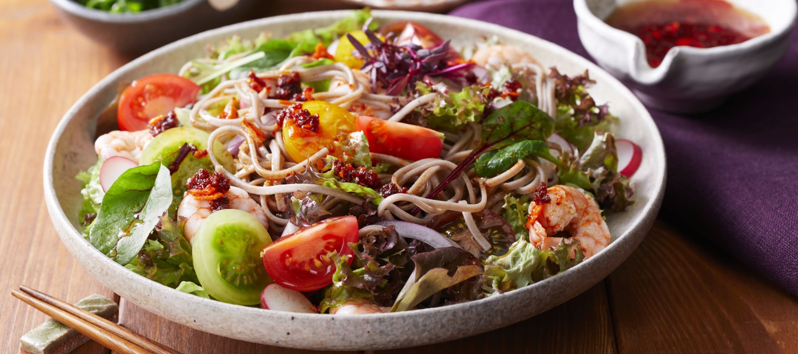 - 소바(기호에 맞는 면)는 표시된 만큼 삶은 후 찬물에 씻고 물기를 뺀 다음 그릇에 담습니다.