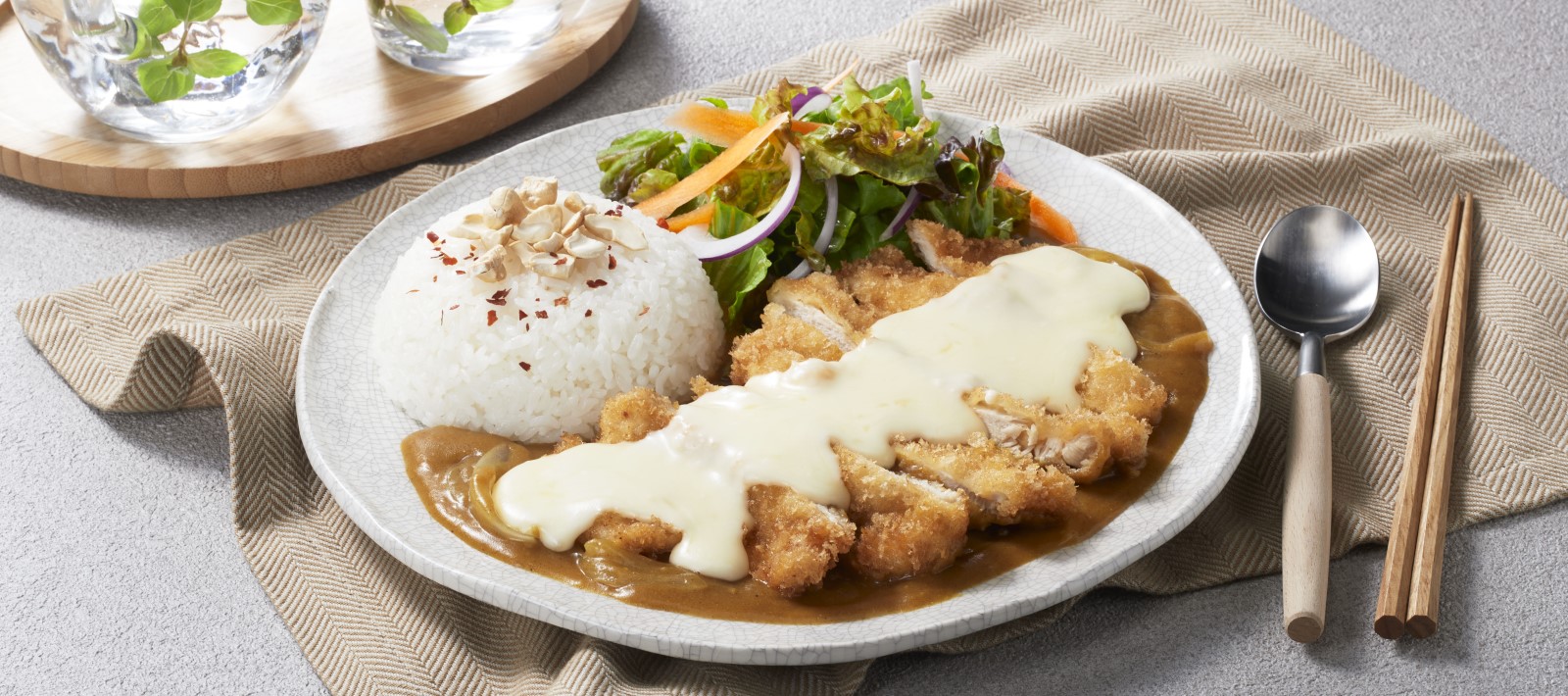 치킨카츠에 치즈 소스를 뿌려 드시기 바랍니다.