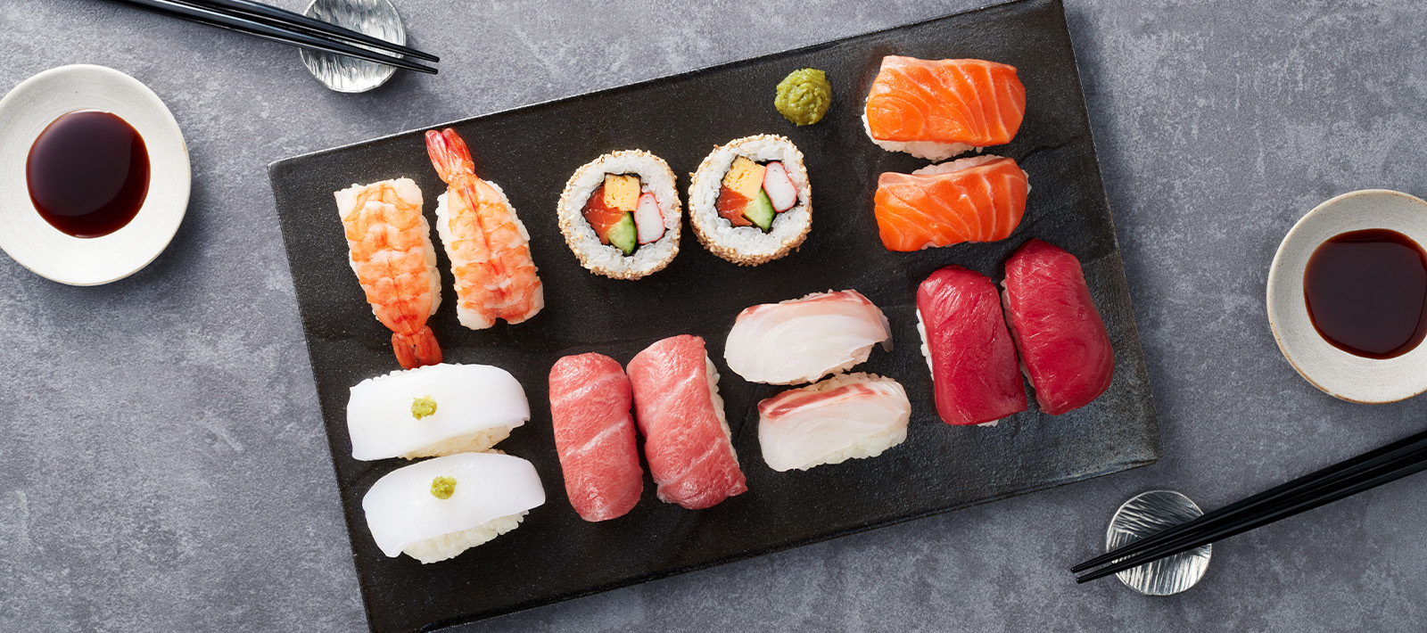초밥에 간장과 와사비를 얹거나 토핑하여 드시기 바랍니다.
