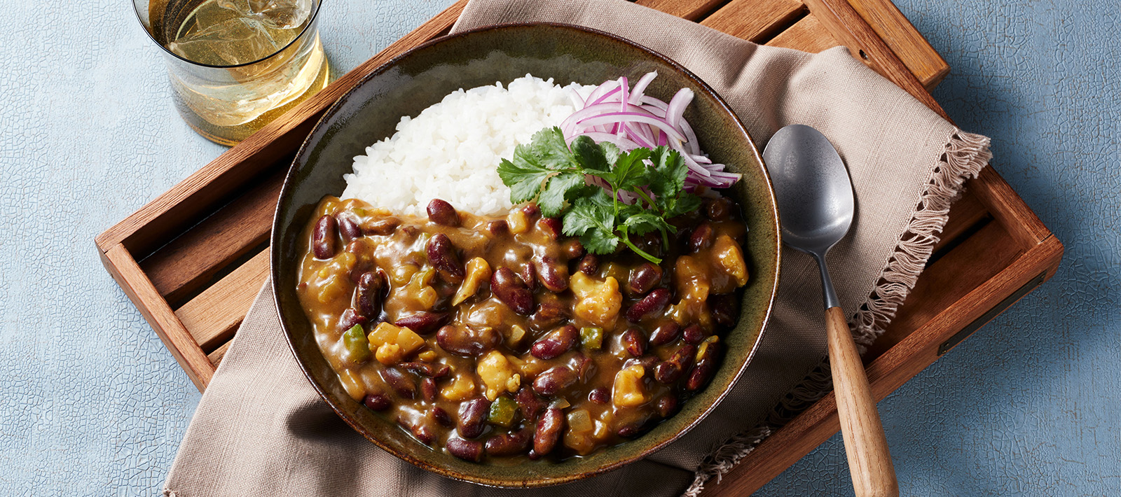 - Serve the rice and curry [4] on a plate and garnish with red onions and cilantro as desired.