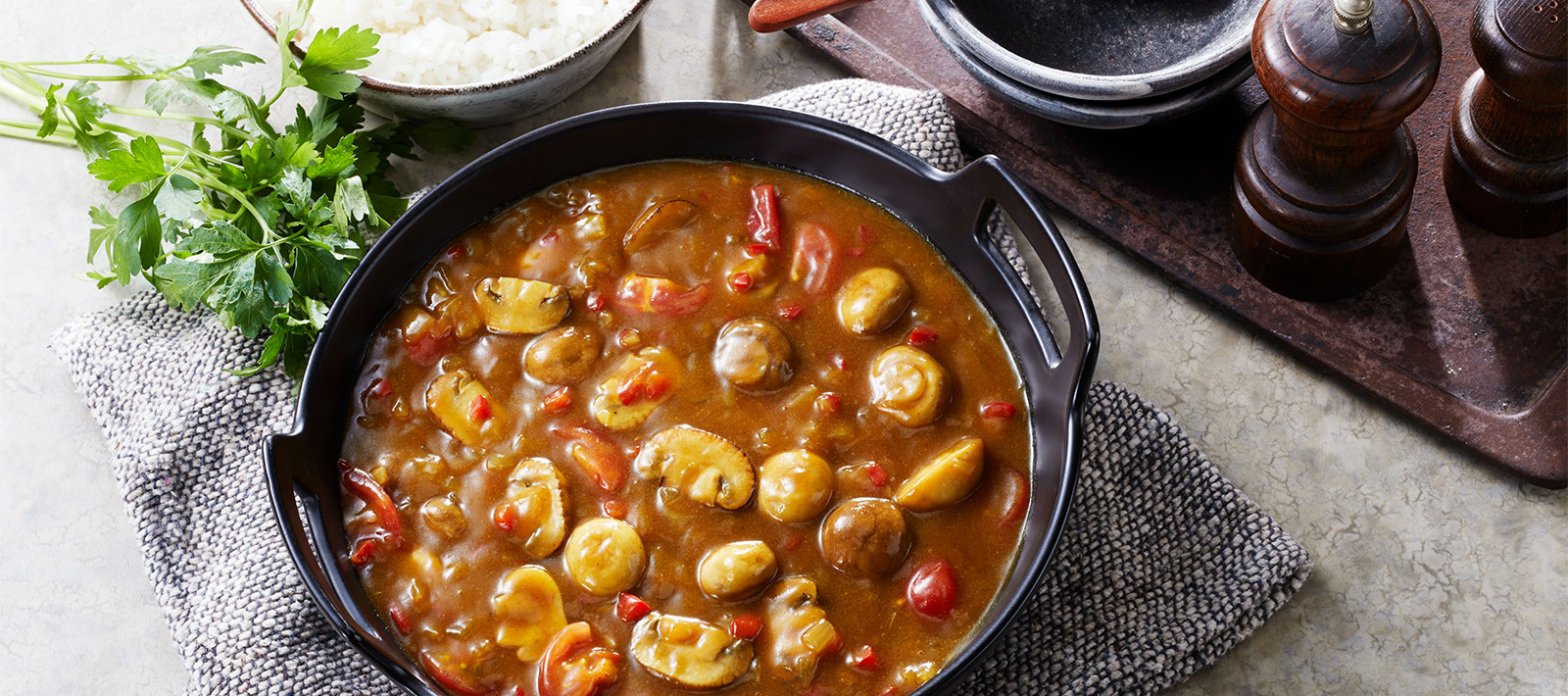 * When making a large amount of curry, melt the curry mix in hot water first before adding it to the vegetables cooked in the pot to make mixing easier.
