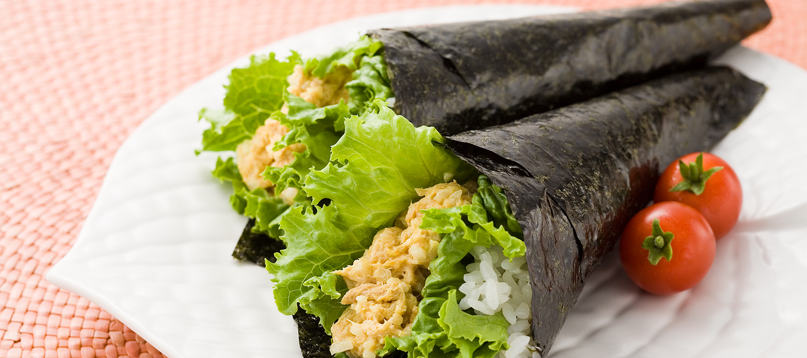 Thinly spread [1] on the seaweed sheet. Put lettuce and [2] on top and roll from one end.