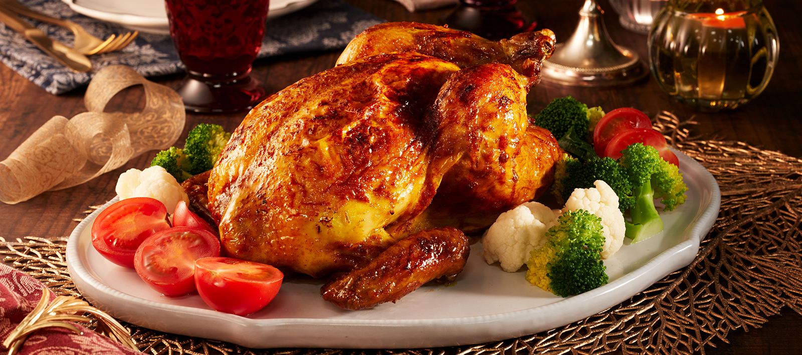 Baking time: Turkey: 180°C (350°F) for 2 to 2½ hours Whole chicken: 180°C (350°F) for about 2 hours