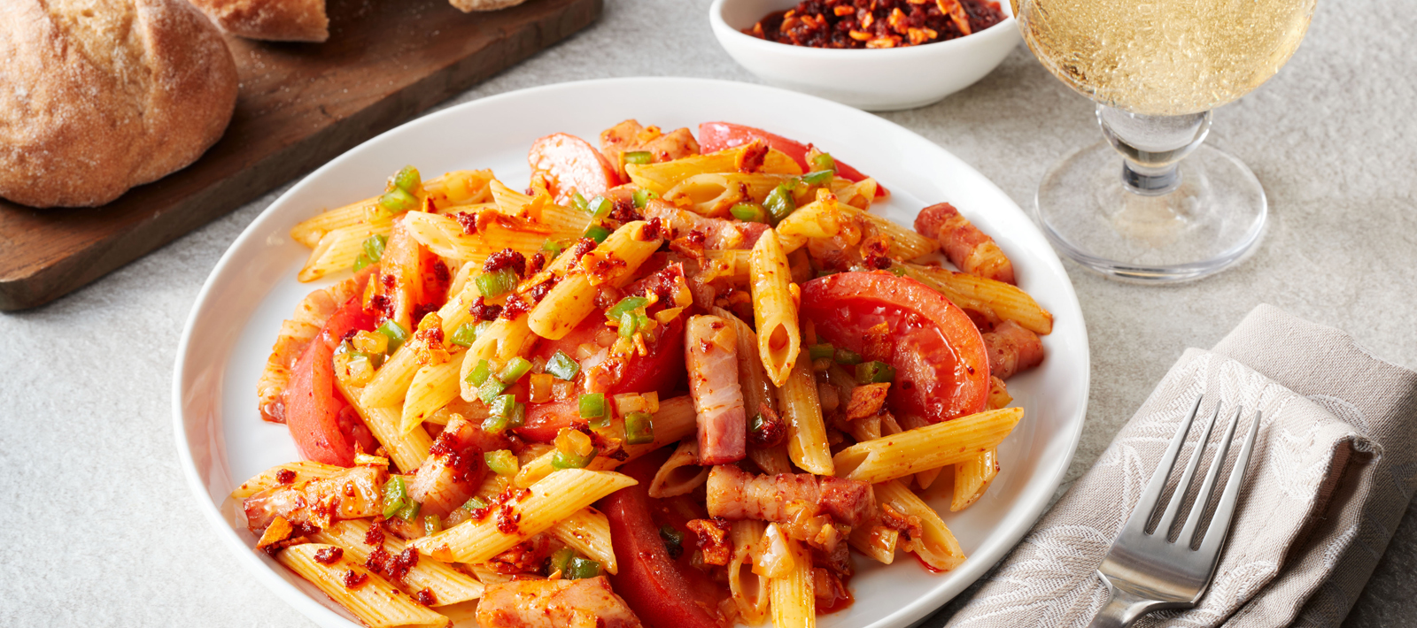 Tomato Bacon Penne with UMAMI TOPPING