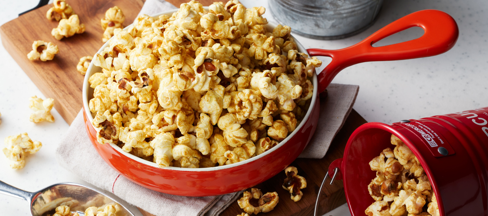 Turn off the heat, pour in the popcorn from step [1], and stir quickly to ensure the popcorn is evenly coated with the curry mixture while it is still hot.