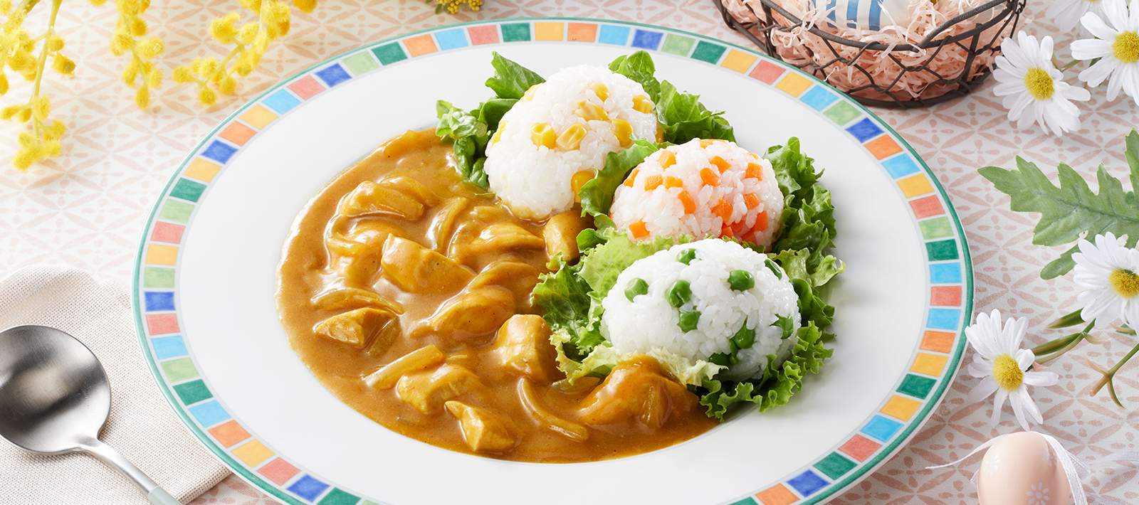- [Egg-shaped Rice]Mix each ingredient with warm rice and make into an egg shape.